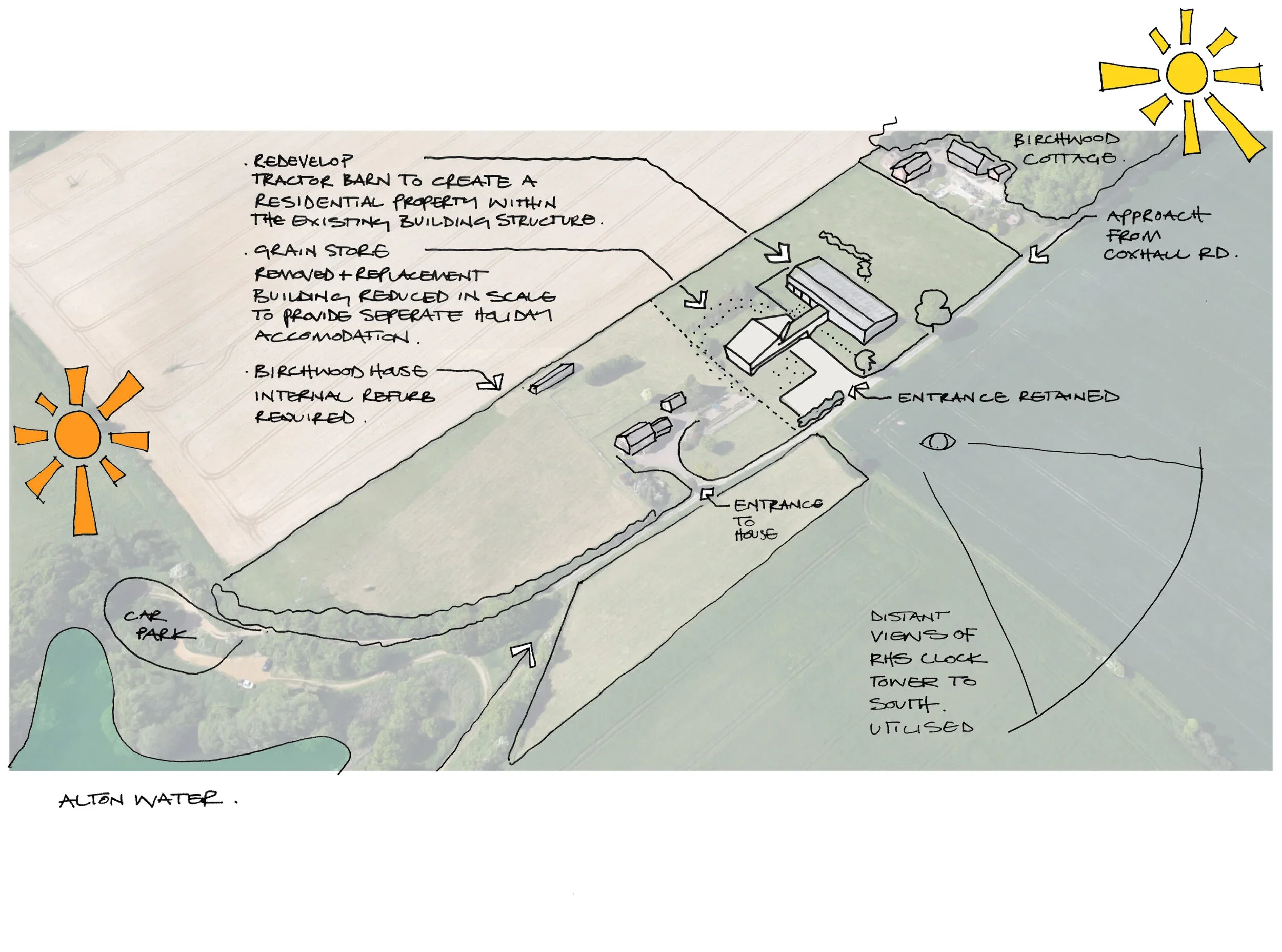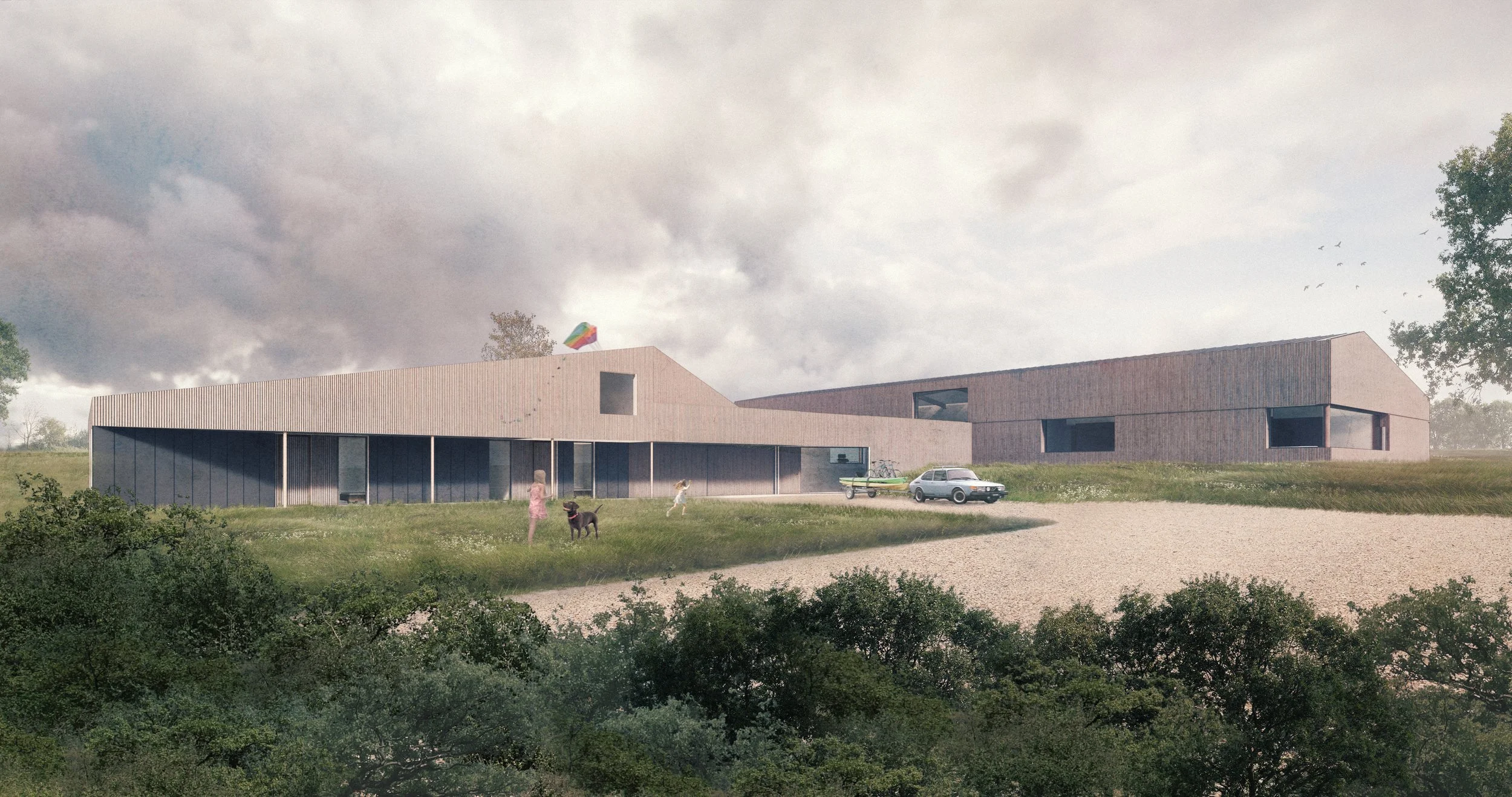 The Birchwood development reinterprets the scale and language of traditional agricultural barns to create a contemporary yet deeply contextual rural scheme. Located within an Area of Outstanding Natural Beauty, the design preserves the simple, linear forms of the existing buildings, maintaining their agricultural character while introducing a restrained and carefully considered modern expression.