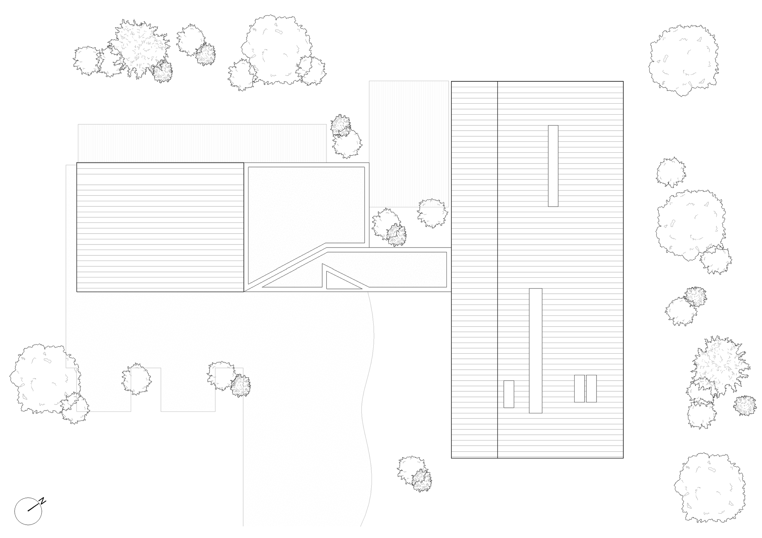 The material strategy draws on local vernacular traditions while expressing a contemporary architectural language. Vertically oriented timber cladding, sourced locally, references the texture and rhythm of traditional barn structures, allowing the buildings to weather naturally and settle into the landscape over time. This is paired with a standing seam metal roof, providing a refined, minimalist counterpoint and delivering long-term durability with low maintenance requirements.