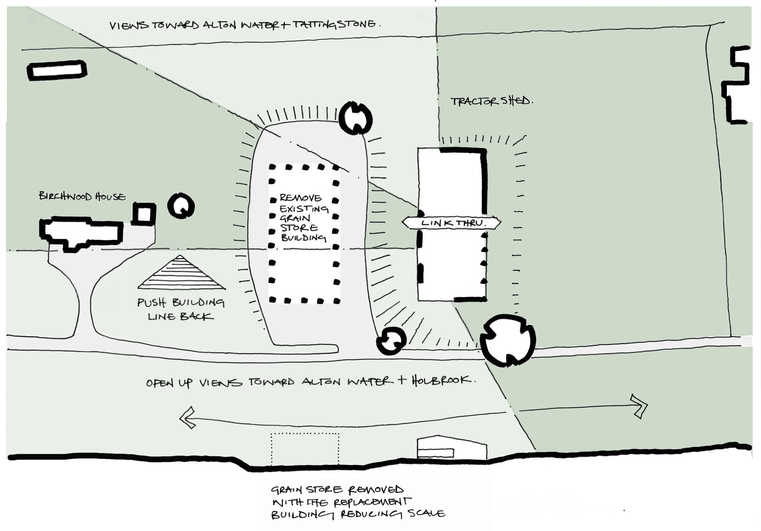 The former tractor store is converted into a four–five bedroom family dwelling, retaining its original volumetric presence. A dilapidated grain store is replaced with two self-catering holiday cottages, positioned to sit comfortably within the established farmstead arrangement. A low, single-storey link connects the elements, conceived as a subtle architectural intervention that forms the entrance to the main house and a sheltered porch to the cottages. This approach minimises visual impact across the open landscape, ensuring the development reads as a cohesive and sensitive addition to its setting.